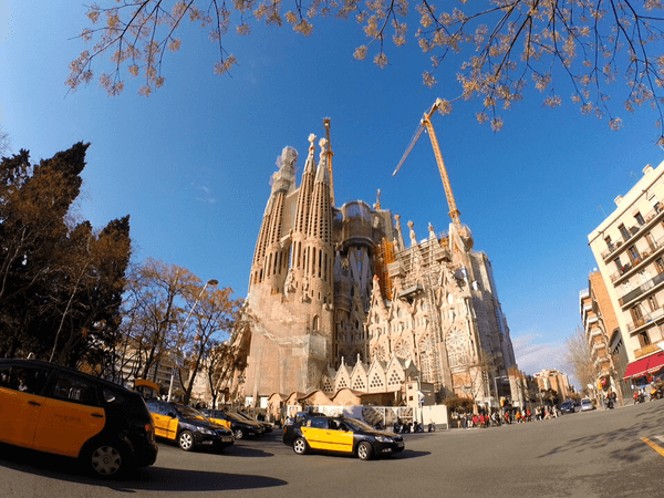 ▲タクシー乗り場がある、サグラダファミリアの南側より撮影した一枚。時間帯にもよりますが、写真を撮影するなら太陽の位置を考えて逆光にならないように撮影するのがオススメ。